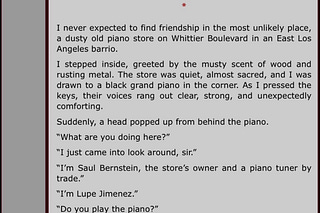 A short story about an unlikely friendship and the love for pianos recently published by Mobius Magazine.